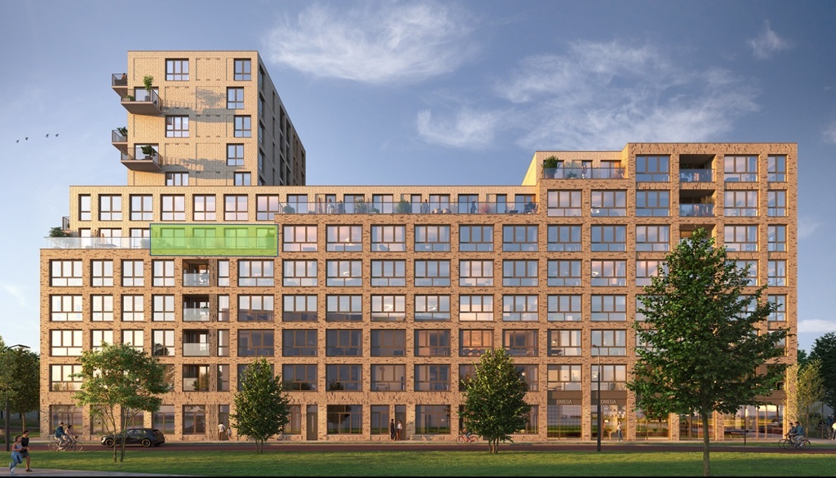 Samen met het naastgelegen Kappa vormt Omega een ensemble van in totaal 275 appartementen, met een gezamenlijke parkeervoorziening in de kelder. De meeste privébergingen liggen op de begane grond en er is volop plek voor je fiets in de collectieve fietsenstalling. Op de eerste verdieping vind je bovendien een sfeervolle, gezamenlijke daktuin: een fijne plek om even buiten te zitten, te ontspannen of een praatje te maken met de buren.