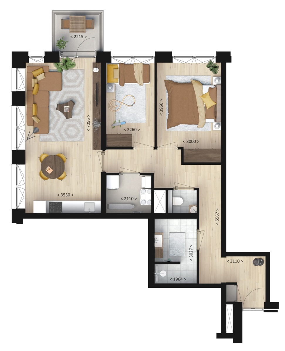 3 kamers (2 slaapkamers)