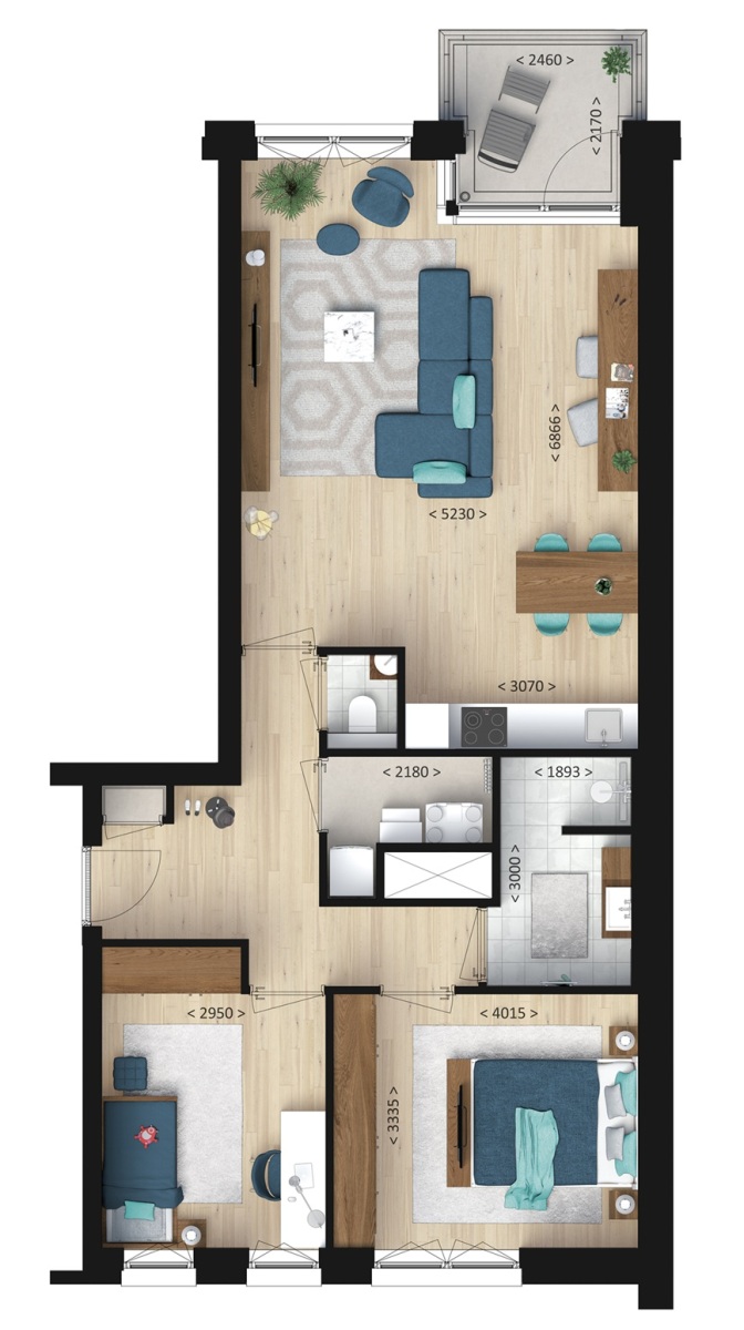 3 kamers (2 slaapkamers)