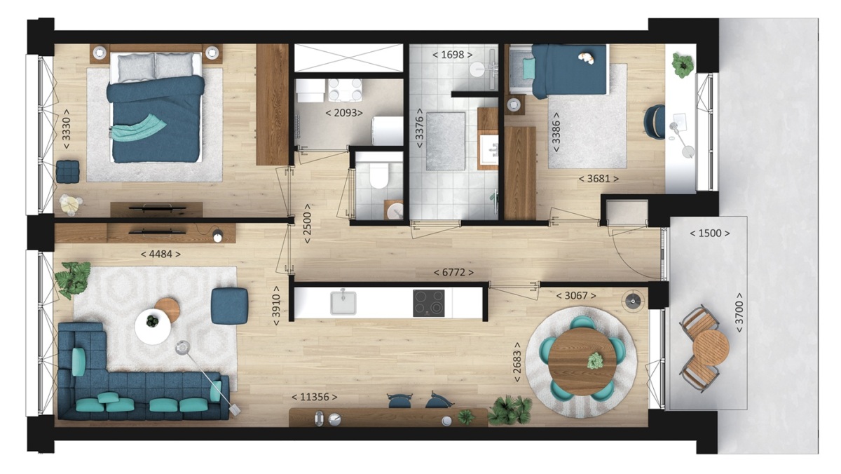 84 m² woonoppervlakte 2 slaapkamers